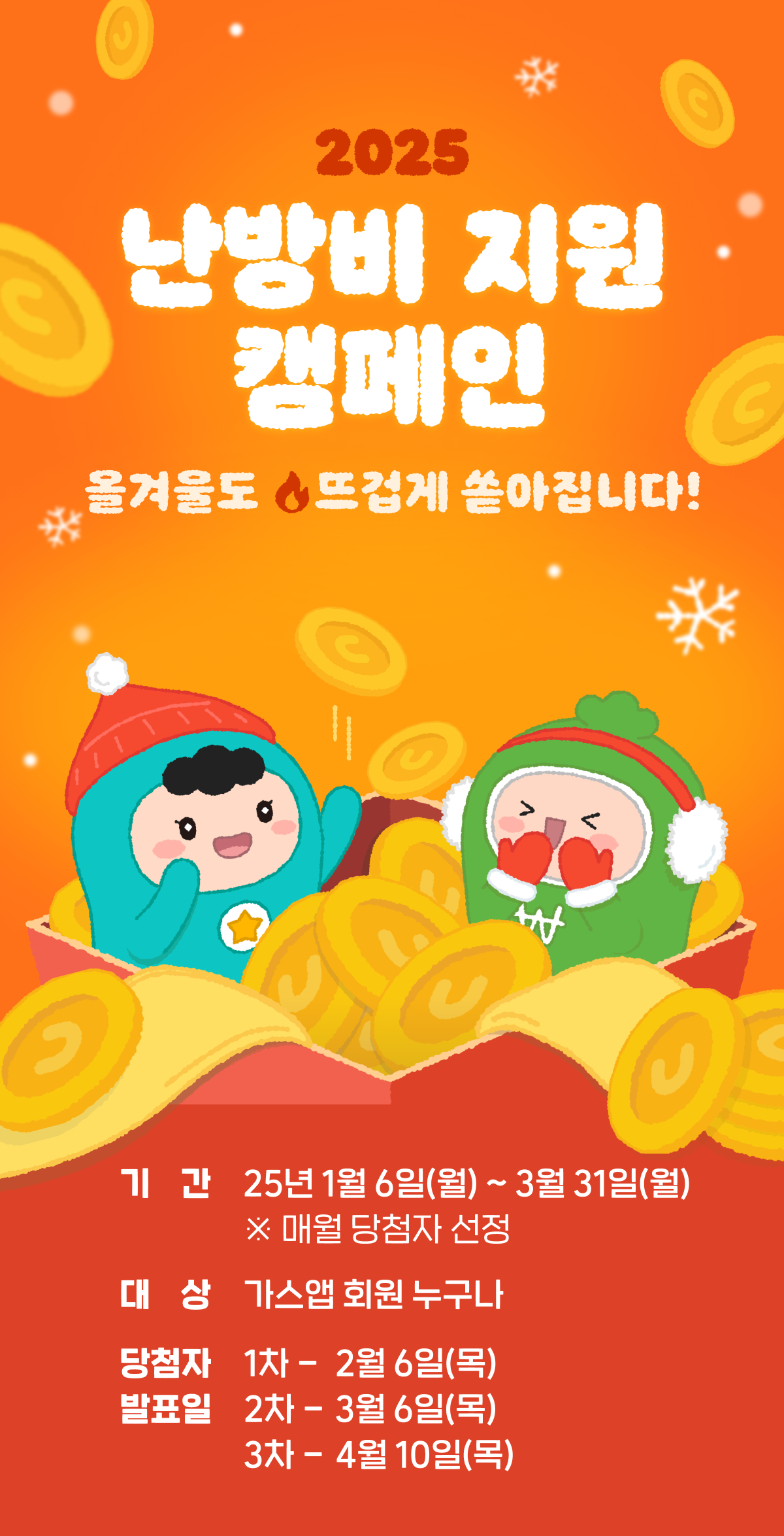 난방비 지원대상은 가스앱 회원이라면 누구나 신청가능하다고 해요!