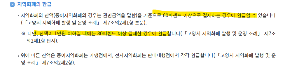 경기도 고양시, 지역사랑상품권, 지역화폐, 고양시 지역화폐, 종이지역화폐, 전자지역화폐, 상품권, 상품권 재발급, 상품권 환급, 상품권 훼손
