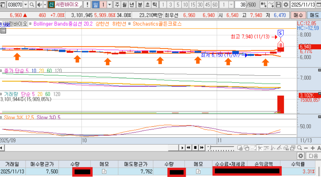 오전에 서린바이오가 거래량터지며 급상승하기에 얼른 3% 챙겨서 나왔습니다 :)