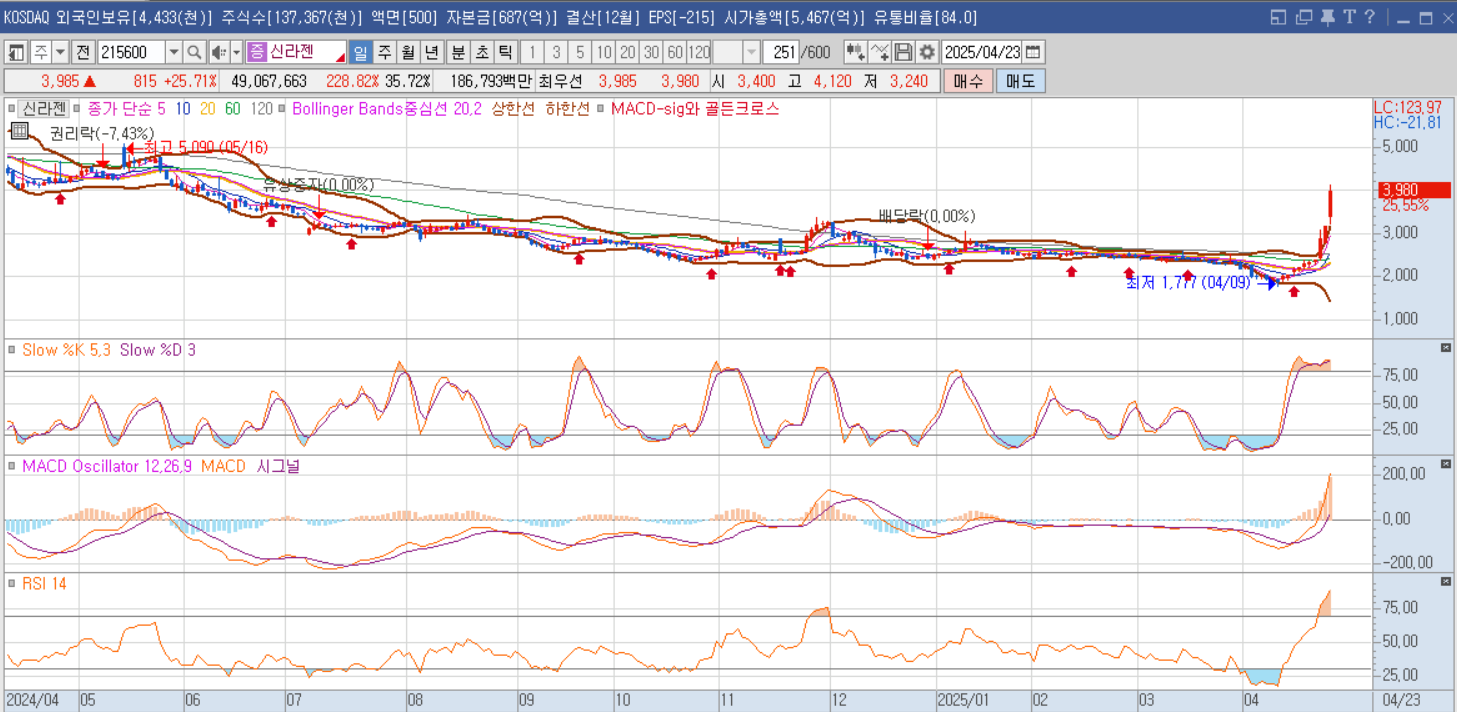 신라젠의 주가가 2025년 4월 23일 상승한 최근 이슈와 주식 그래프로 기술적 분석한 신라젠의 주가전망, 신라젠의 최근 사업보고서를 기반으로 어떤 사업을 하는지, 재무현황, 기술력과 특허, 배당금정보, 관련 정부정책, 유상증자 에 대해 준비해보았습니다.