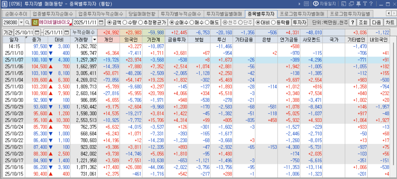 에이비엘바이오 기관·외국인 수급현황