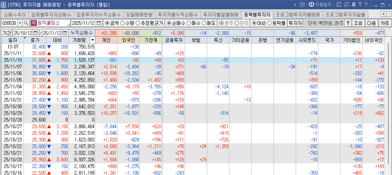 4. 원익홀딩스 기관과 외국인 수급