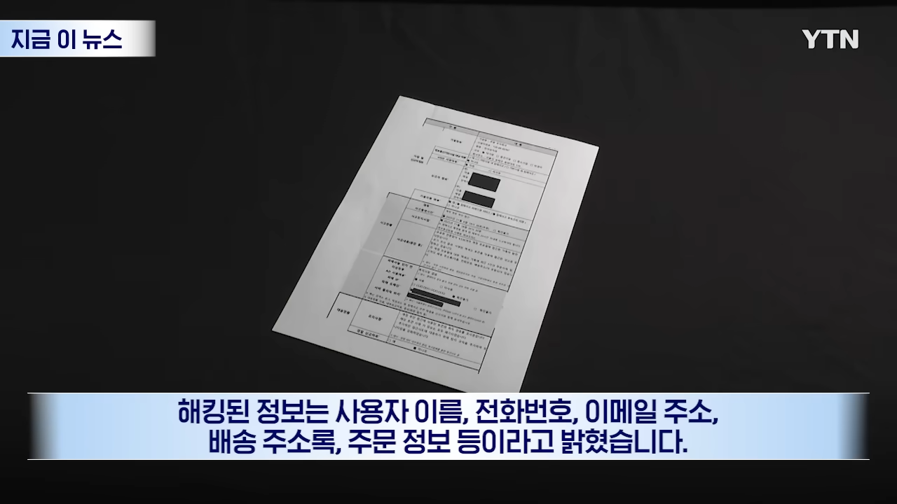 유출된 정보는 이름, 전화번호, 이메일, 배송지 주소, 최근 5건의 주문 내역입니다. 다행히 결제 정보(카드번호, 계좌정보)와 비밀번호는 암호화되어 있어 유출되지 않았다고 쿠팡은 밝혔습니다.