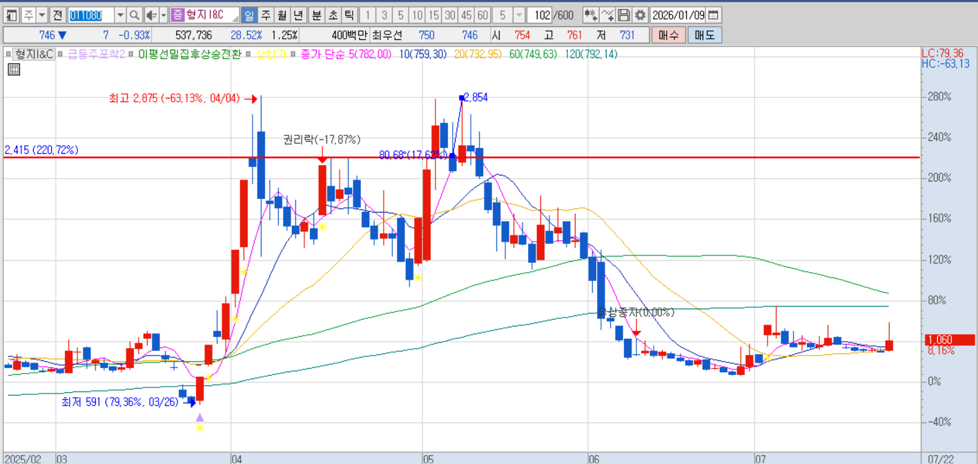 이종목은 바닥에서 100%이상 이미 상승이었고 더이상 상승될 여력이 없었는지도 모르겠다.